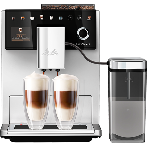 Die Melitta® LatteSelect steht für Kaffeevielfalt und Individualität auf Knopfdruck. Mit einer einfachen Berührung der farbigen Echtbild-Sensorfelder startest du die Zubereitung deiner gewünschten Kaffeespezialität nach Originalrezept. Für Individualität sorgen die zwölf voreingestellten Kaffeerezepte, die Möglichkeit, eigene Rezepte für bis zu sechs Personen einzustellen und abzuspeichern, sowie der manuelle Zwei-Kammern-Bohnenbehälter – Kaffee-Expertise, die du schmeckst.